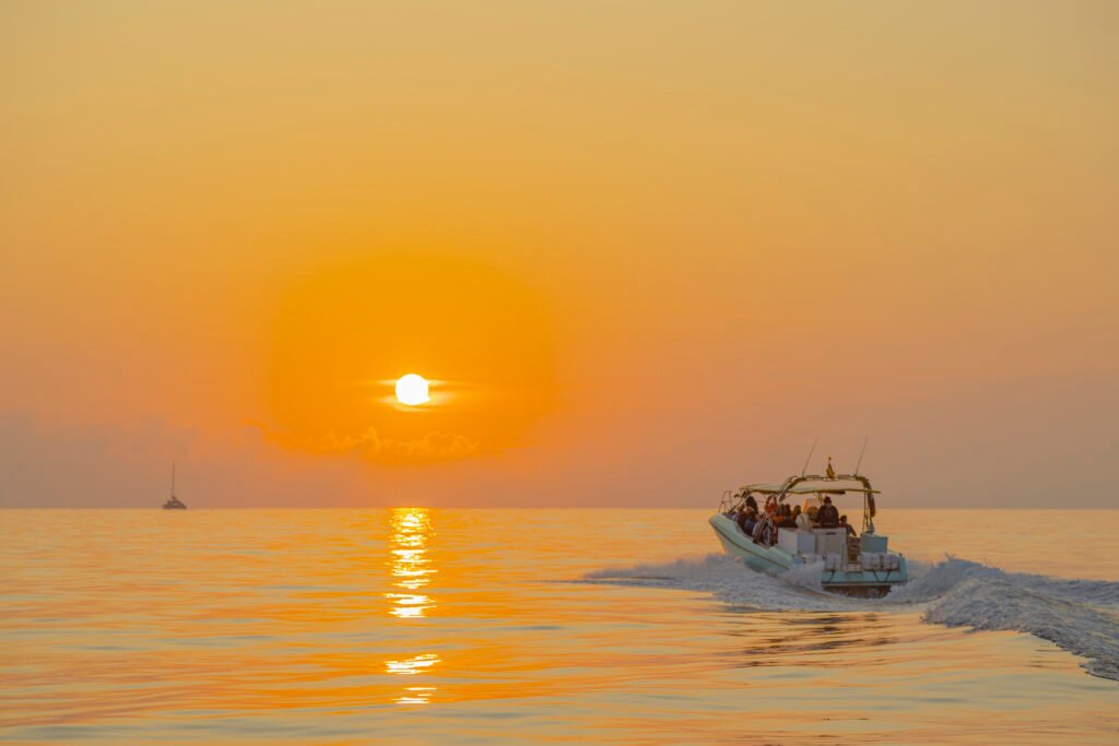 Sin embargo, sí podemos informarte de que nuestro tour con delfines en Alcudia dura, aproximadamente, unas 2 horas y que salimos en función de la hora de salida del sol, por lo que es una excursión ideal para amanecer con delfines. Pero no solo eso. En nuestra excursión permanecerás entre 35 y 40 minutos en el área de los delfines, una horquilla de tiempo superior a la de otras excursiones para ver delfines y que, sin duda, convertirá tu experiencia en un recuerdo inolvidable. Durante la temporada, mantenemos informados a nuestros clientes ante cualquier cambio en los horarios para que puedan planificar el día sin perderse esta increíble experiencia de avistamiento de delfines en Alcudia.