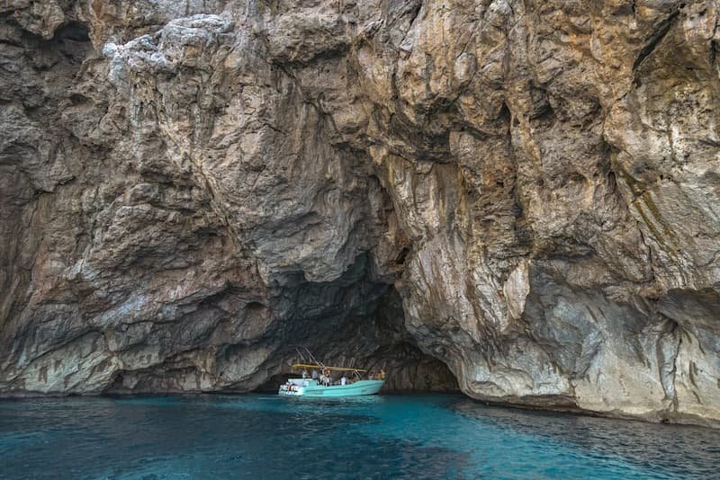 Next, we will visit Sa Cova Gran and Sa Cova d’Aubarca, two caves that we will access on board the boat where our passengers can marvel at the geological formations. We will also visit the spectacular Blue Cave of Mallorca, a real wonder not to be missed.